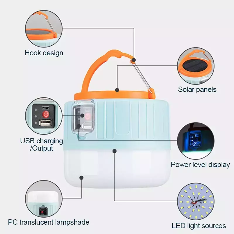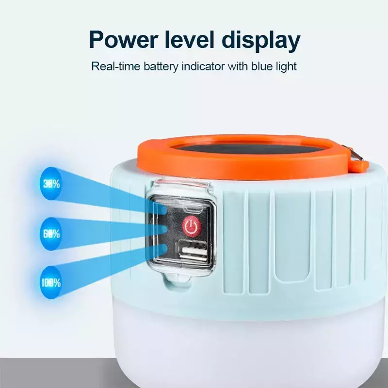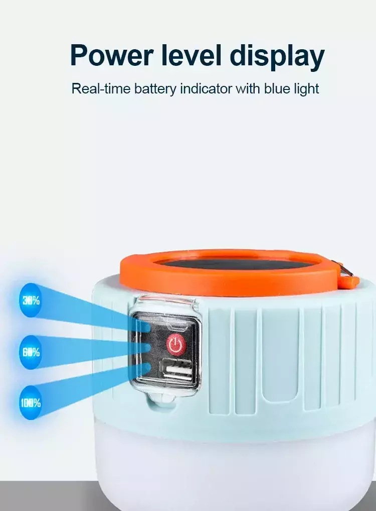 ?[Super Bright and Long Lasting]:Equipped with bright LED, this LED camping lantern rechargeable can cut into 360-degree darkness in the stormiest and dimmer nights. Easily illuminate the entire tent or room. A row of blue indicator lights show the battery level, and you can charge it in time.